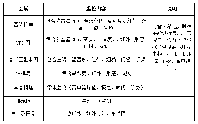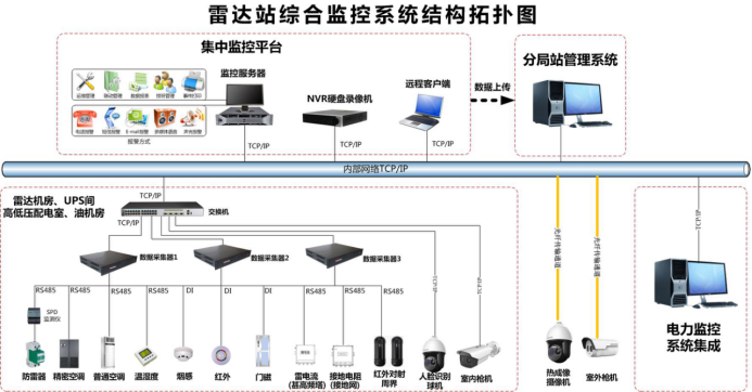 通過建設(shè)雷達站智能綜合監(jiān)控系統(tǒng)可以對分布在雷達站各個區(qū)域獨立的動力設(shè)備和環(huán)境設(shè)施、安防設(shè)施對象進行遙測、遙信等采集,實時監(jiān)視各基礎(chǔ)設(shè)施、安防設(shè)備的運行狀態(tài),記錄和處理相關(guān)數(shù)據(jù),及時偵測故障,并作必要的遙調(diào)、遙控操作,適時通知管理人員處理,結(jié)合先進的視頻監(jiān)控系統(tǒng),對雷達站進行可視化監(jiān)測,實現(xiàn)雷達站的少人、無人值守,以及電源、空調(diào)的集中監(jiān)控維護管理,提高供電系統(tǒng)的可靠性和通信設(shè)備的安全性,為雷達站的管理自動化、運行智能化和決策科學(xué)化提供有力的技術(shù)支持。