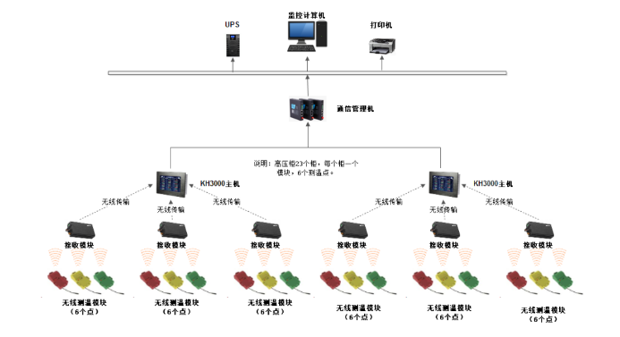 采用遠距離無線射頻技術(shù),結(jié)合計算機網(wǎng)絡(luò)、光纖通信、數(shù)據(jù)庫管理等先進技術(shù)開發(fā)“配變電設(shè)備實時溫度無線監(jiān)測系統(tǒng)”,通過對配變電設(shè)備的關(guān)鍵部位(特別是電纜兩端頭和電氣設(shè)備連接頭等部位)的表面溫度進行連續(xù)不斷地監(jiān)視和統(tǒng)計分析,當溫度升高達到限定溫度或出現(xiàn)溫度非正常變化時,發(fā)出報警信號提醒值班人員緊急處理,可避免或減少故障的發(fā)生,另外提供大量的設(shè)備運行接點溫度數(shù)據(jù)為管理人員進行統(tǒng)計分析提供大量的原始數(shù)據(jù)。該系統(tǒng)是一項提高供電系統(tǒng)安全性、可靠性,確保企業(yè)生產(chǎn)持續(xù)高效,促進增收節(jié)支的重要技術(shù)措施。