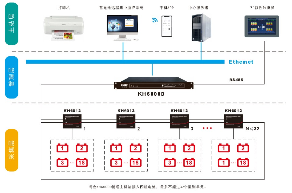 其工作方式是通過在線監(jiān)測(cè)每一節(jié)電池的電壓、電流、內(nèi)阻、容量及環(huán)境溫度的數(shù)值情況來判斷蓄電池運(yùn)行過程中各個(gè)參數(shù)是否處于正常,當(dāng)蓄電池組一致性變差時(shí), KH6000D蓄電池在線監(jiān)測(cè)管理系統(tǒng)會(huì)自動(dòng)啟動(dòng)在線均衡功能對(duì)電池進(jìn)行均衡調(diào)節(jié),并能對(duì)性能較差的電池進(jìn)行在線活化,其能有效的防止蓄電池組過充電或欠充電,使蓄電池組性能一致的運(yùn)行在最佳狀態(tài),提高了蓄電池組安全運(yùn)行水平,延長(zhǎng)蓄電池組使用壽命,減少了維護(hù)人員對(duì)電源系統(tǒng)的維護(hù)時(shí)間與維護(hù)成本。